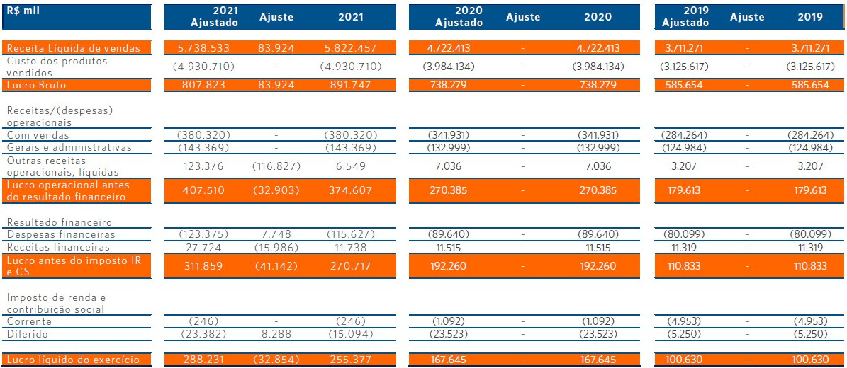 Segue resultado do 4T21: (OBS: na verdade o ajustado está na direita e não onde foi dito que está ajustado)