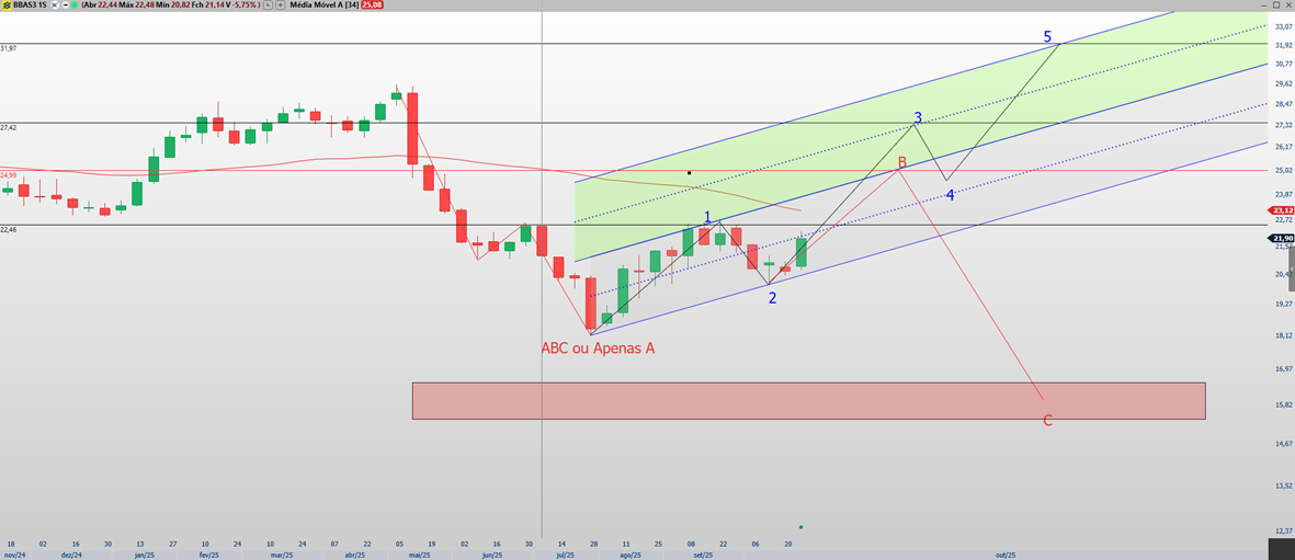 Com certeza fui o primeiro a avisar a queda eminente da Bbas3. Pretensão minha não é verdade, porque que de fato antecipou o movimento foram as ondas. E agora esta acontecendo algo bem interessante com este ativo.