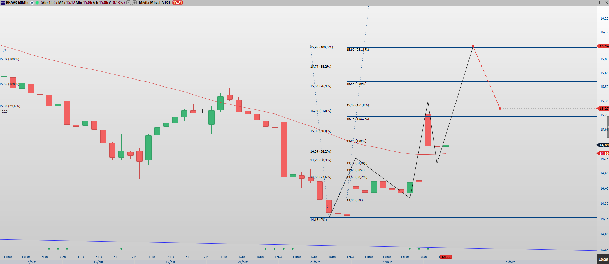 O que ocorreu é que o sistema colocou o alvo inicial da operação em 21,75 o que indicava que havia encontrado a possibilidade de uma onda 3, abrindo espaço para um impulso que coloca o alvo em 22,61.