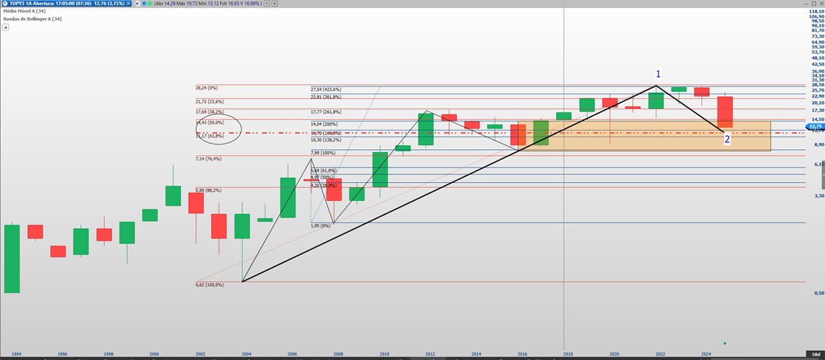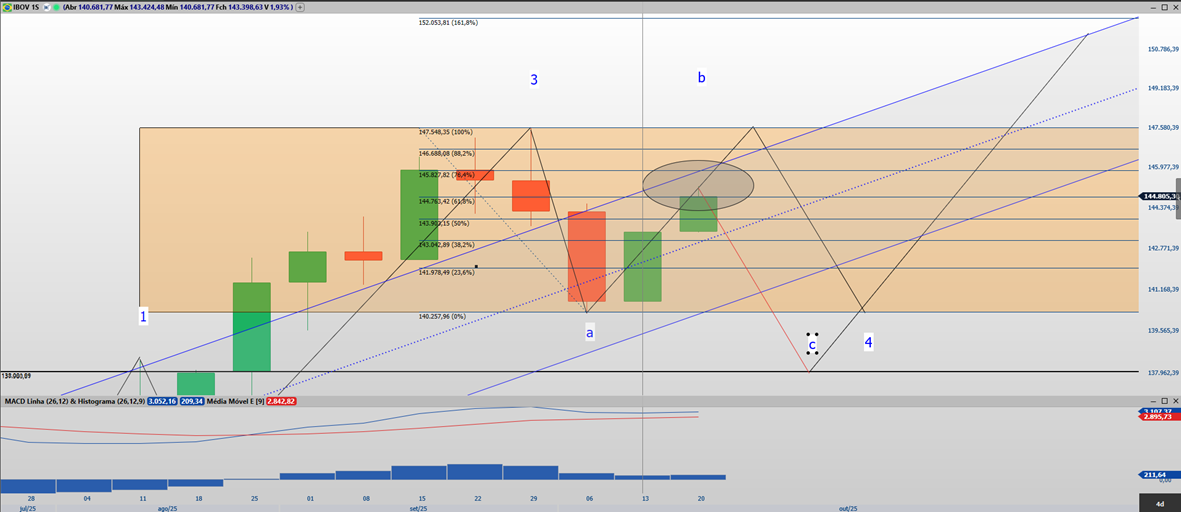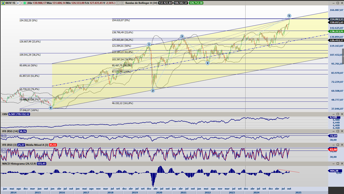 Tudo que relatei acima ocorreu fora dos meus estudos com as ondas, e no gráfico diário, então fui olhar o que estava ocorrendo no gráfico semanal.