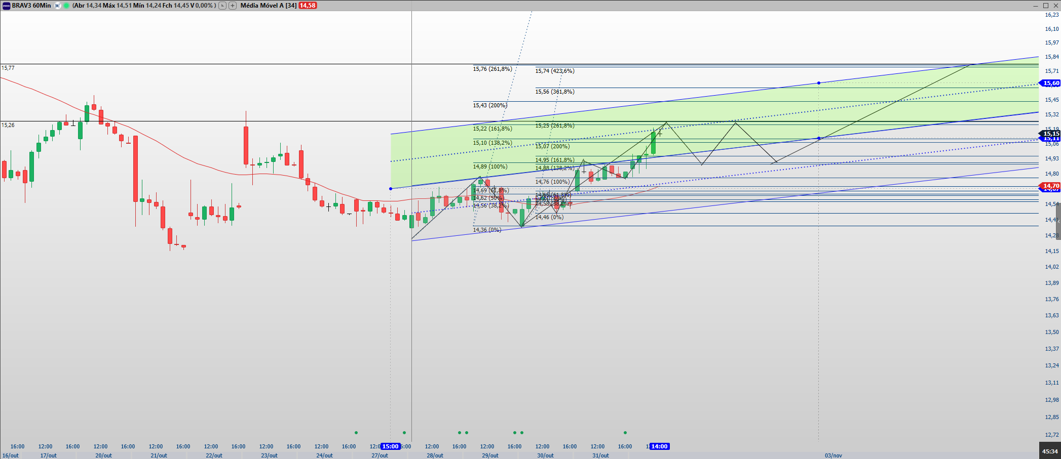 Tenho um sistema automatizado de swing/position que opera baseado apenas em AT, e no dia 27/10 ele deu 3 sinais de entrada de compra no ativo, e abriu uma operação de compra. Fui olhar então a movimentação por um outro setup que eu não tenho automatizado, e ele também estava dando entrada. No dia 28/10, um setup seguidor de tendencia também abriu entrada modificando a minha operação original, mas indicando um movimento positivo.