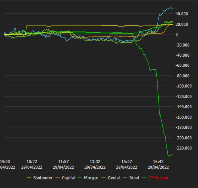 E JPMorgan socando a bota no indice agora no final do dia com saldo negativo de mais de 50mil contratos: