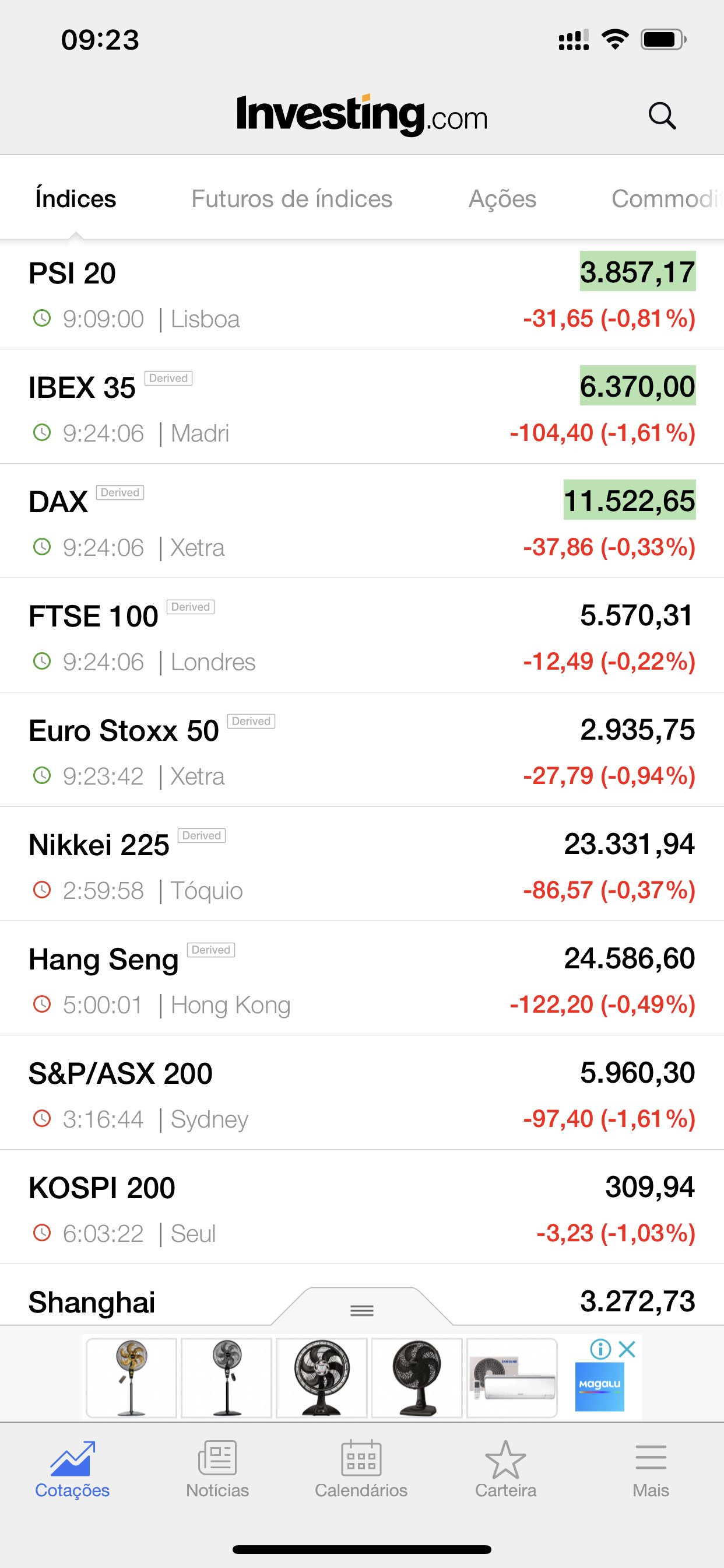 Ate Tupy me surpreendeu: no inicio estava uns 5% positivo (devido aos resultados de ontem) e agora ja esta quase no 0%.