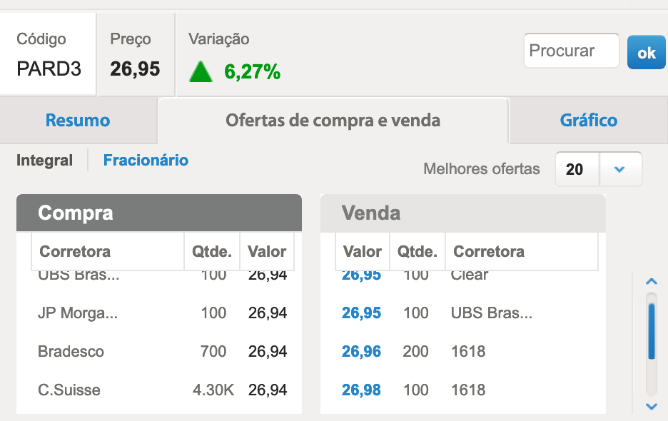 PARD3 + 6,43% com 3200 negociações até o momento.
