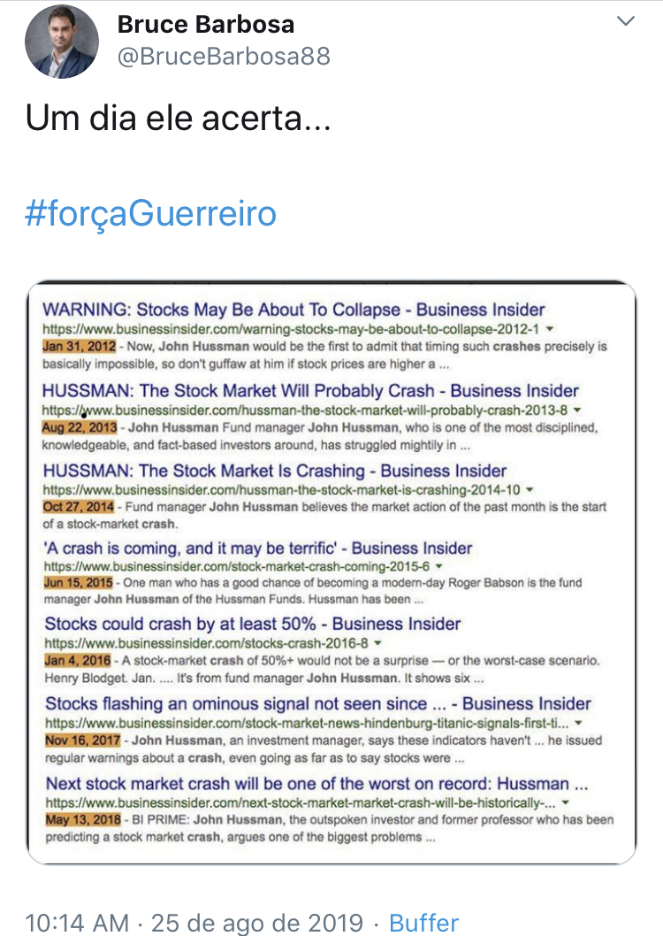 Ele mesmo falou pela manhã que vai sair ainda. Sorte nossa que o exterior estava animado com possibilidade de retornar as negociações entre EUA x China, porque se não…