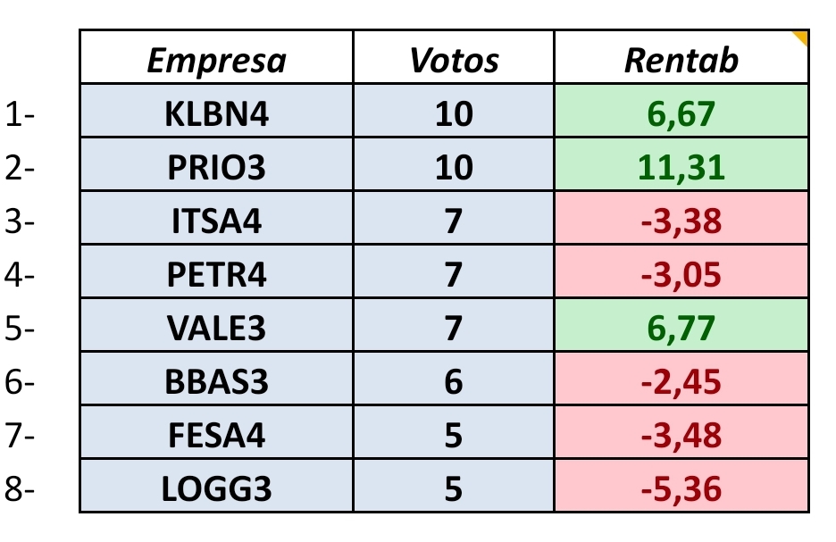 Meus votos esse mês, sem mudanças:
