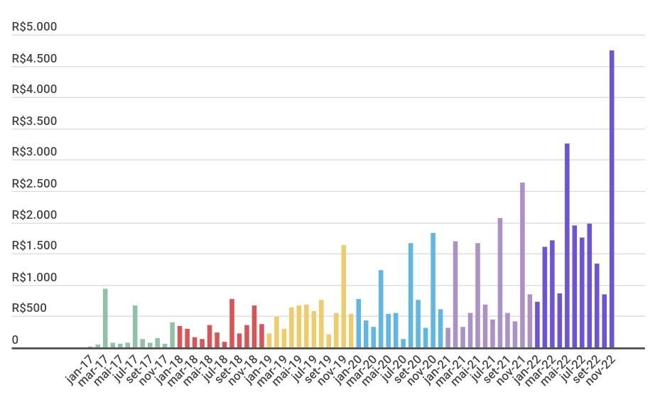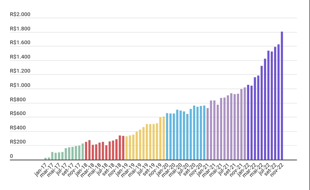 Em janeiro devo chegar na média mensal de R$ 2100. Para 2023 pretendo chegar aos quase em 3k.