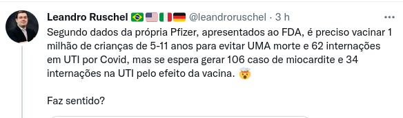 Você percebe que o forte sentido ideológico nesta obsessão por obrigar pessoas a se vacinarem quando no grupo de menor risco e maior risco pela vacina é a novo grande objetivo da agenda.