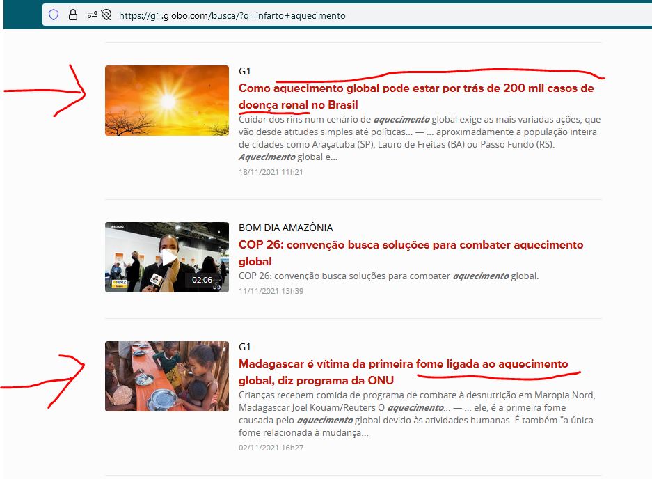 Apesar dessas notícias nesses formatos não terem saído no G1, o G1 e vários outros já noticiaram que “o aquecimento global está aumentando a incidência de infartos”, entre vários outros absurdos! Notícias tendenciosas que são mais é propaganda escancarada.