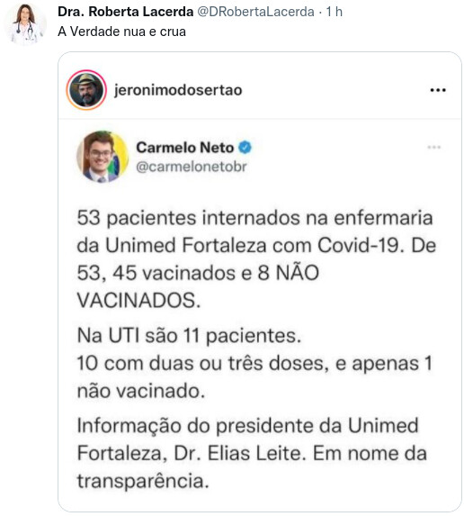 OBS: E isso tudo por causa de uma dita vacina que não funciona, piorando cada vez mais as pessoas.