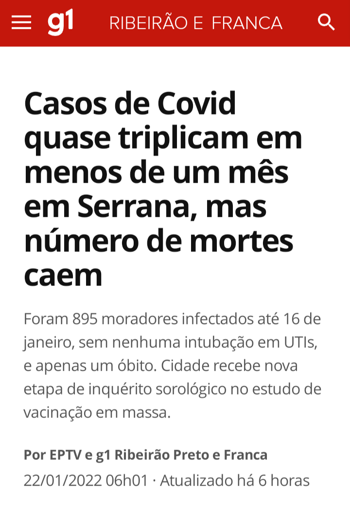 O que não pode ser esquecido: quem não se vacinar, tenderá a sofrer mais com o vírus. Terão casos mais graves e mais desfechos letais em comparação à população vacinada. Estudos científicos sérios comprovarão isso no futuro de forma indubitável e acachapante, anotem isso.