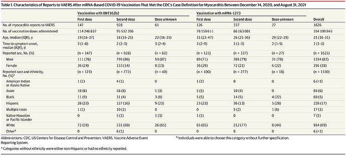Casos de miocardite relatados após picadas Covid baseada em mRNA nos EUA de dezembro de 2020 a agosto de 2021
