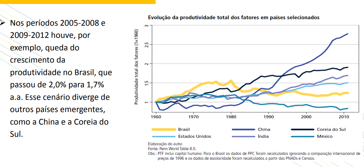 Os fatores como tecnologia, qualificação e sistemas legais, tributarios e trabalhistas podem influenciar a produtividade.