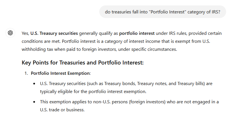 a) Treasuries se enquadram como Portfolio Interest segundo o IRS?