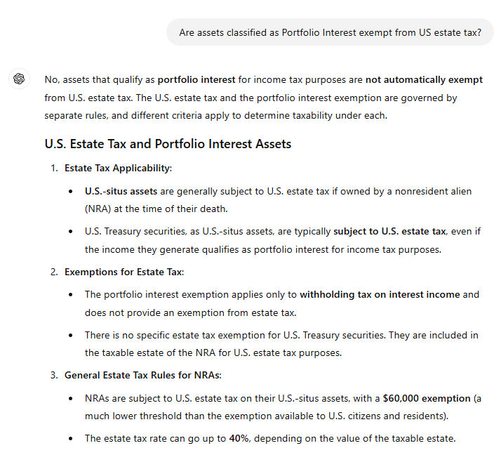 b) Ativos classificados como Portfolio Interest são isentos de imposto sobre herança?