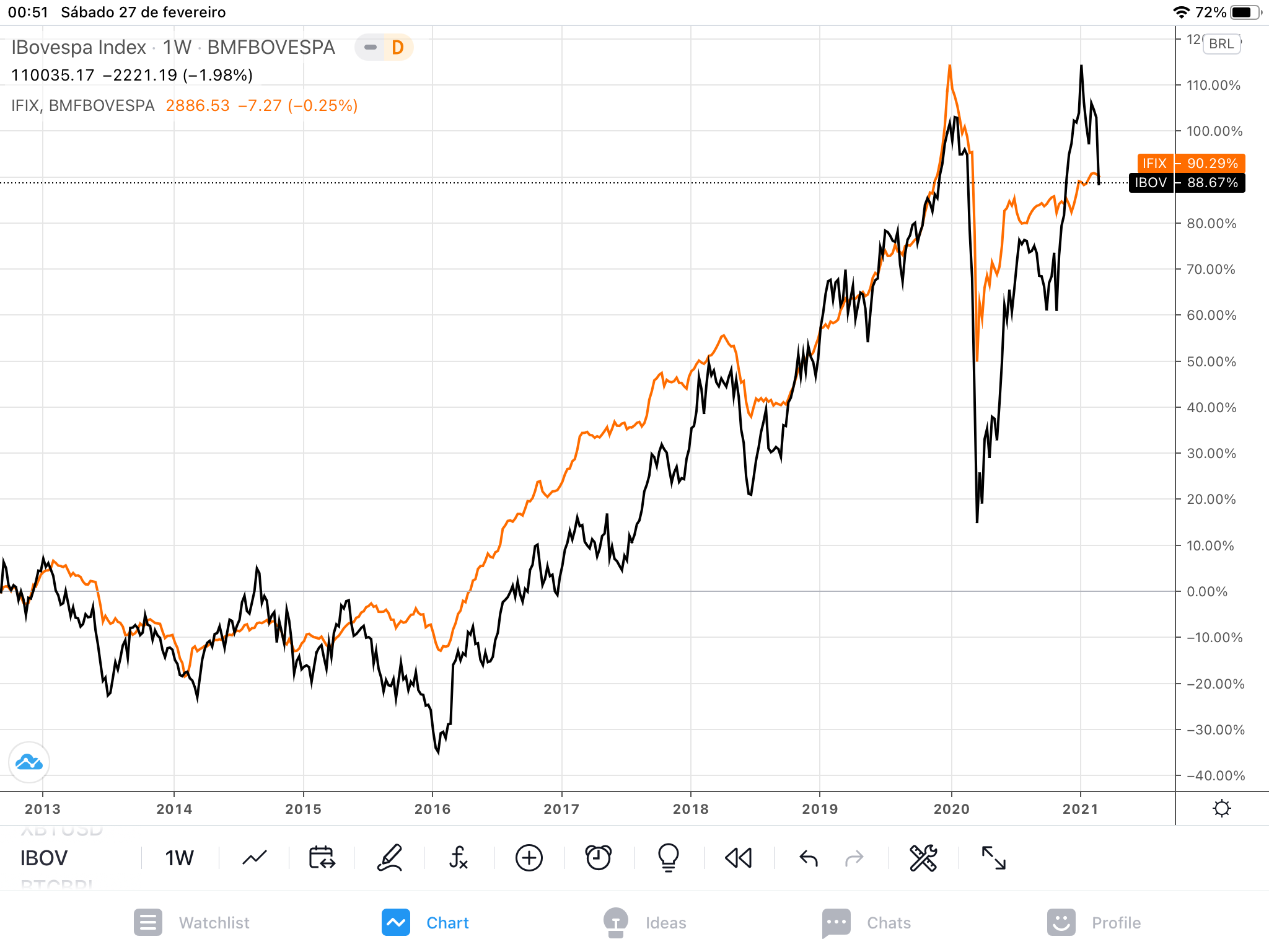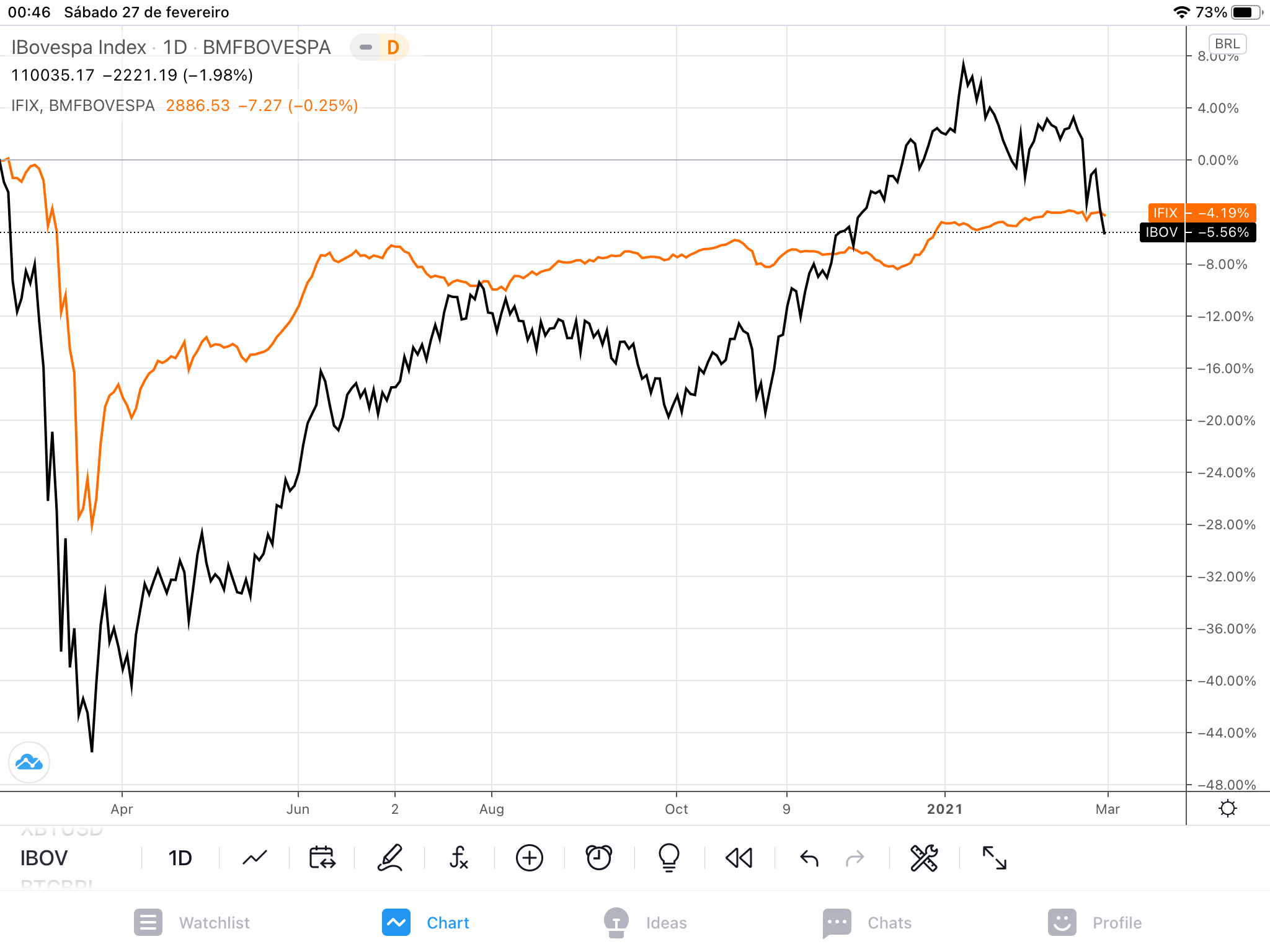Queria achar o post que fiz mostrando que o IBOV tinha descolado demais do IFIX e que uma hora um ia buscar o outro… tá aí.