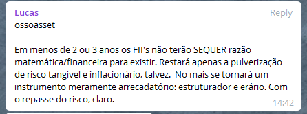 É prematuro pra dizer, mas FIIs poderiam virar um investimento “exclusivo” pra PF. Isso é até interessante pra quem busca exclusivamente a renda passiva.