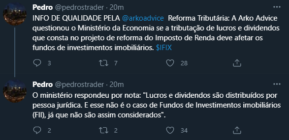 Tem a questão do PG odiar os rentistas também, porém quem investe em FII tem um perfil mais conservador/moderado, galera vai pegar essa grana e meter onde? na renda fixa. Ou seja, a proposta dele vai contra o que ele mesmo fala.