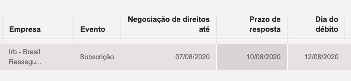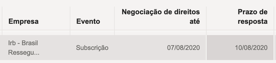 Se você tem irbr3,você tem a oportunidade de comprar acho que 35% do total de ações suas ao preço de 6,93 até o dia 10/08.