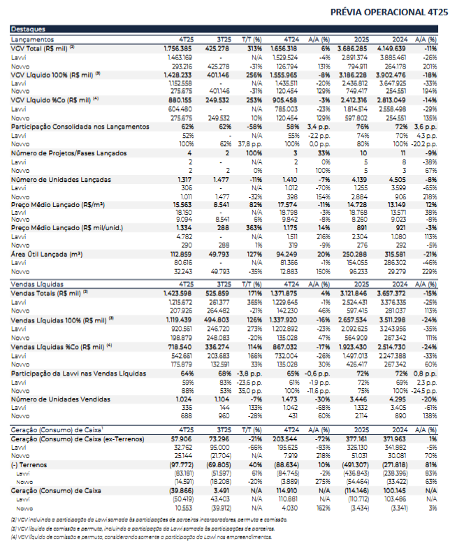 *vide detalhamento das visões 100% e %Lavvi na tabela principal do documento completo