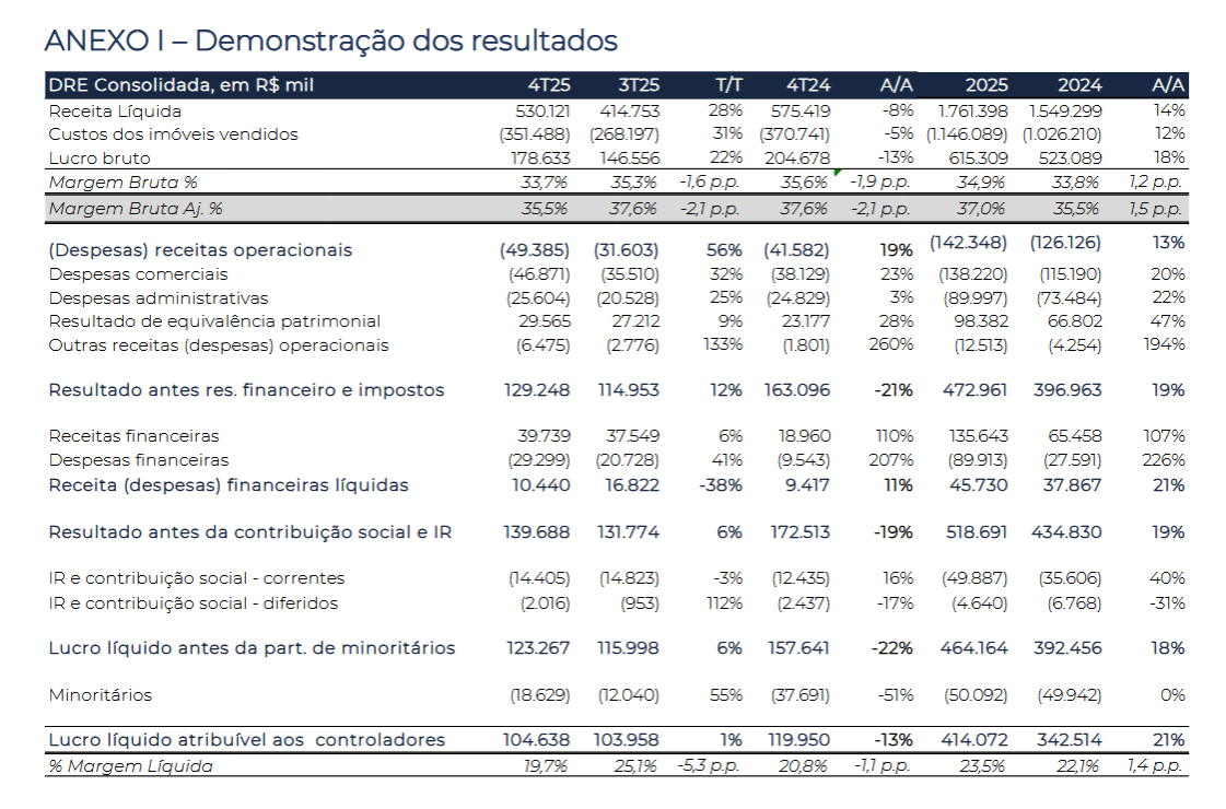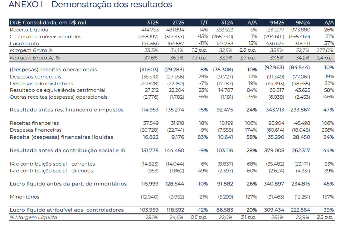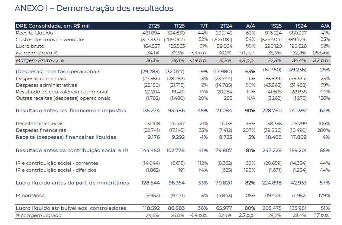 Geração de caixa1: R$60 milhões no tri (ou geração de R$100 milhões na visão ex-terrenos). No semestre, queima de R$10 milhões de caixa (ou geração de R$123 milhões na visão ex-terrenos);