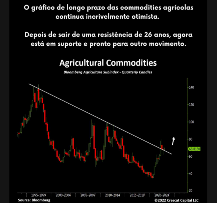 Esses dias lia um artigo sobre as commodity currencies e achei interessante que a pesquisa tinha levado a concluir que havia forte correlação do Real Brasileiro com a Soja. O que não fizeram foram seguir para as outras commodities onde também temos domínio no comércio exterior. Isso me faz pensar se a desvalorização do Real em primeiro momento, que levou a valorização das commodities agrícolas (em reais). Num segundo momento, não forçou a valorização das mesmas em dólar ou, a desvalorização de todas as moedas exceto o Real. A antítese é que forçamos os juros reais. Mas o resultado é que o Real, que logo pulou de 4 para 5, assistiu o EURUSD sair de 1,25 para 1,00. O USDJPY ir de 100 para 140. E não se mexeu.