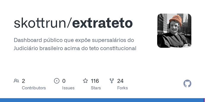 Importante são dados públicos colhidos por ferramenta feita pelo cidadão: Extrateto — Dashboard open-source que expõe os supersalários do judiciário brasileiro