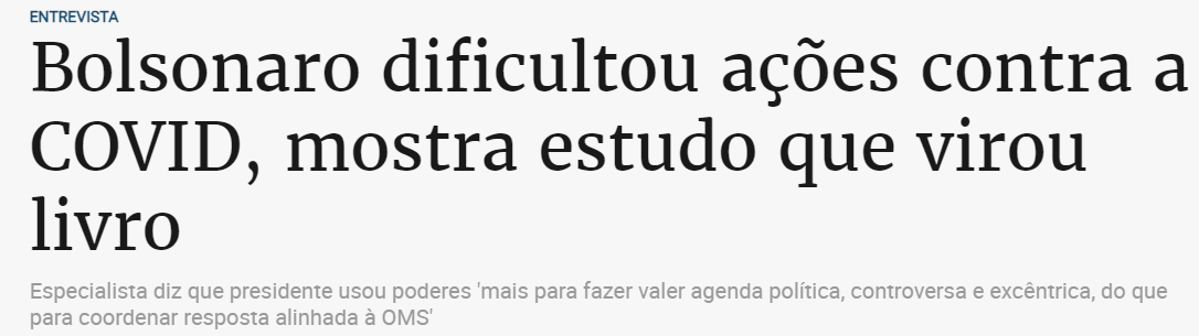 Desobrigar o uso de máscaras e negligência quanto a gravidade são argumentos muito subjetivos. Porque quem desobriga, não proíbe. Quem negligencia a gravidade, faz isso pela sua moral e não por sua atitude. Jamais vi campanha contra as vacinas, vi apenas a insistência em ter aprovação da Anvisa e receio quanto a responsabilidade que seria dada ao Estado no caso de efeitos colaterais, por efeito o Japão retardou a vacinação pelo mesmo motivo. Sobre a campanha da cloroquina, o @rolissosls disse que postaram um estudo de compravação no MS, duas perguntas: o estudo foi feito através de alguma instituição federal? O estudo estava errado? No todo, o que vi foi a defesa da liberdade do médico de prescrever o que bem entendesse. De certa forma, fazer campanha contra um remédio é tão danoso quanto fazer campanha a favor, pois cria preconceitos e tira do médico um julgamento que em primeira instância deveria pertencer a ele.