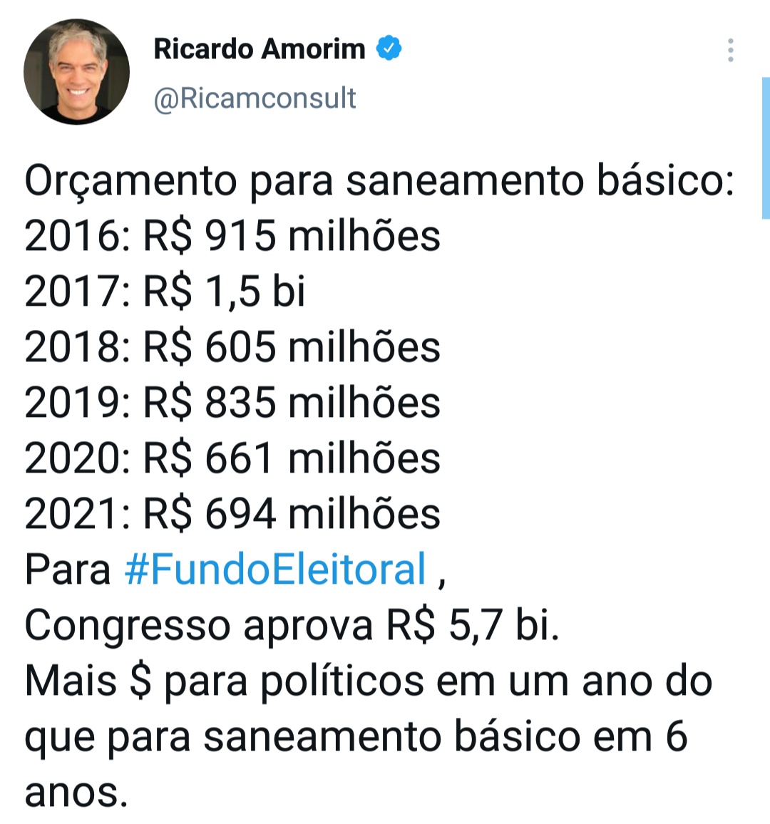 Arrecadação todo ano aumenta, em todo governo se cogita a criação de novos impostos, o fundo eleitoral é um dos grandes ralos que nós temos. Afinal, é mais fácil aumentar o fundo eleitoral do que desviar dinheiro de outras fontes.