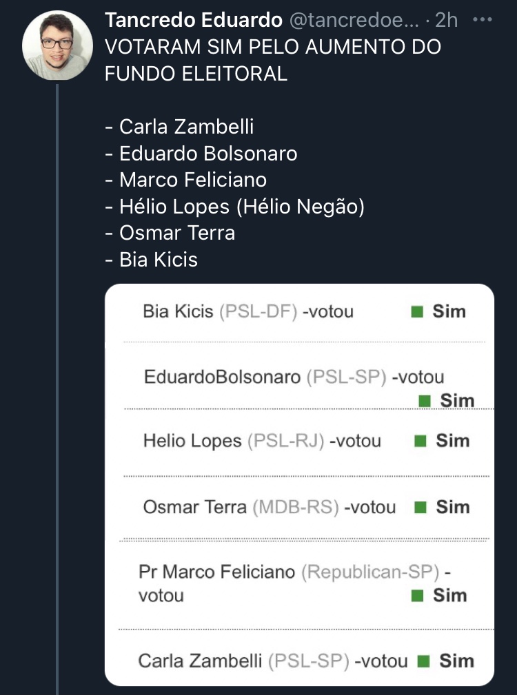 Pra aumentar o fundo eleitoral tem dinheiro , mas pra implantar o voto impresso auditável não tem grana