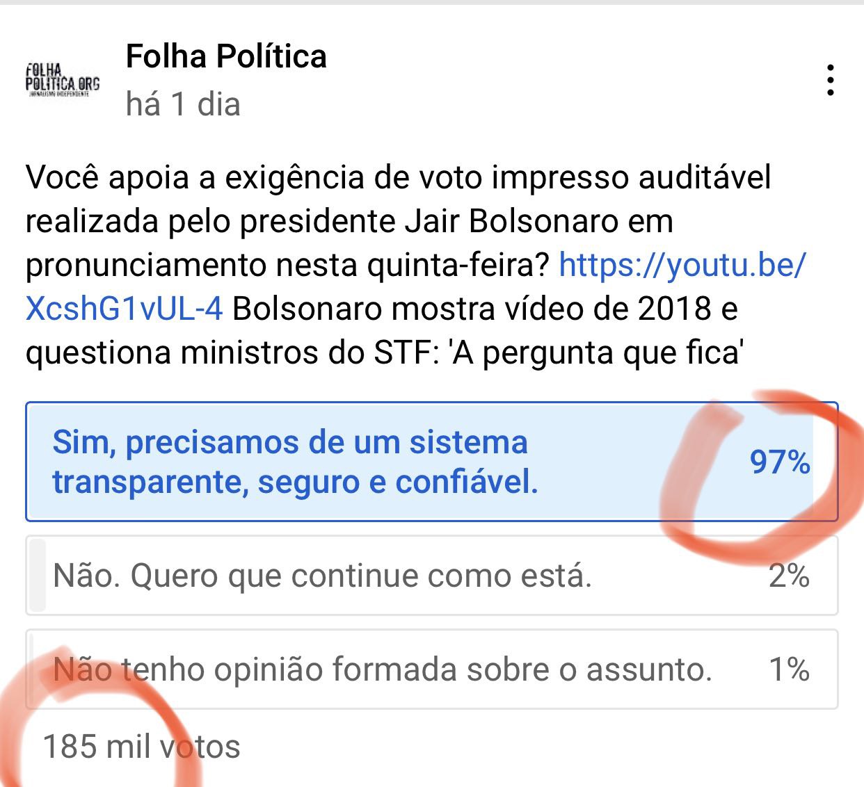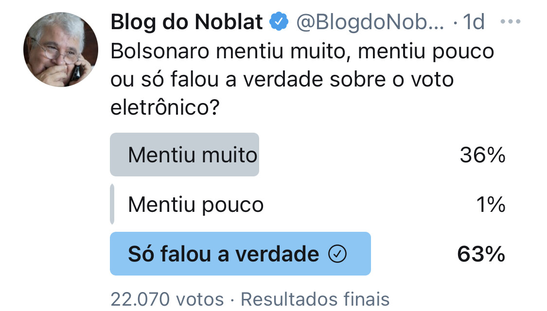 Da mesma vibe de “pesquisa em site do PT diz que 99% dos brasileiros quer o impeachment de Bolsonaro”.