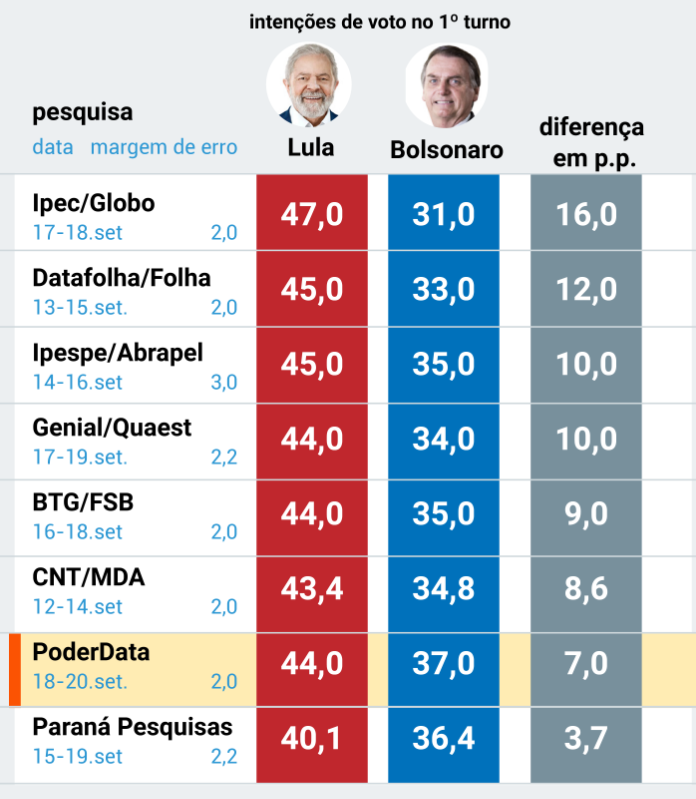 É…deu ruim pro Jair, o ex presidiário vai vencer, impressionante, até há algumas semanas eu me negava a acreditar. Mas até pesquisas do BTG, Paraná, Quaest e Atlas estão dando Lula.