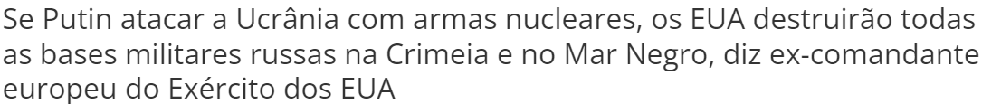 Pelo visto, estamos próximos de uma guerra nuclear. O Putin tá com cara de quem vai apertar o botão.