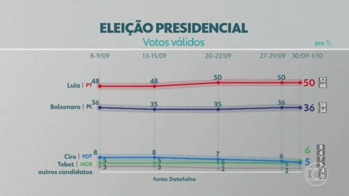 Deve terminar com Lula em torno de 47% e Bolso com 44%. Diferença pequena, tudo em aberto pro 2 turno.