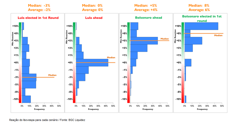 se o bozo e o molusco terminarem proximos, praticamente empatados, amanhã a bolsa vai dar uma porrada p cima. Já estava meio precificada uma vitoria do molusco, no 1 ou no 2 turno