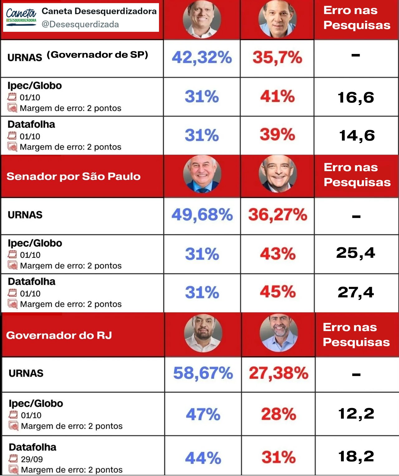 - A maioria dos institutos de pesquisas não erram, eles fraudam as pesquisas que são compradas/vendidas, dependendo de onde se olha.