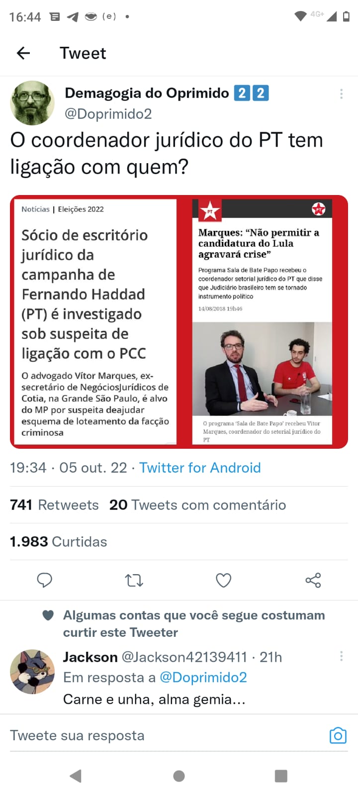 Mais uma trazendo ligação do PT com o PCC kkkkk, vão censurar tb ?!