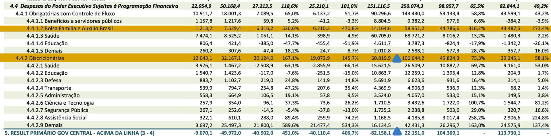 Subiu em relação a 2021 e está nesse ano acima dos últimos 3 ou 4. Mas deve coincidir com ajuste de servidores + aumento do auxílio. Todavia essas discricionárias reagem muito ao resultado primário e ao desempenho do PIB. Se você colocar o pegar o auxílio de 2019 e jogar de lá para cá nas discricionárias, vão ter subido bem.