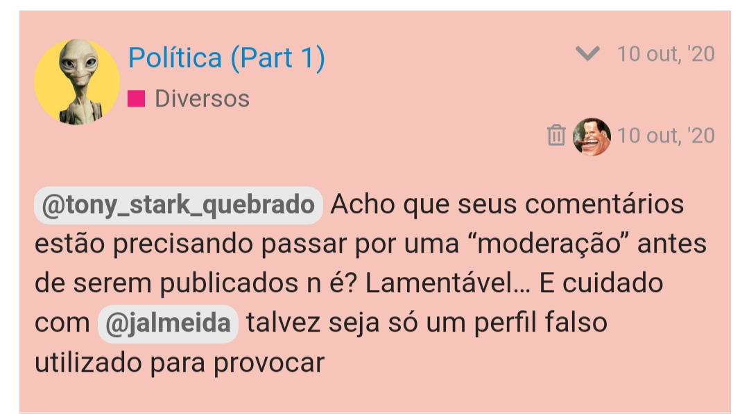Vc depois apagou todas suas mensagens anteriores, de longas provocações e agressões a outros colegas, deixando só este último post. Logo, tirou todo o contexto da coisa.