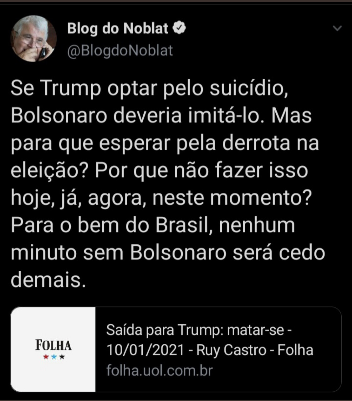 O Exterminador quis sair bem na foto. Discurso politicamente muito fácil e demagogo, trazendo à comparação uma tragédia incomparável com a invasão do Capitólio.
