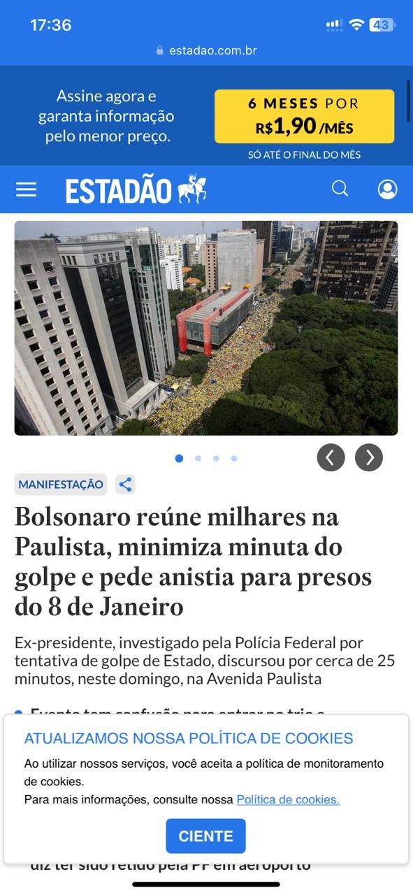 Ontem, no momento da manifestação, mais precisamente às 4 horas da tarde. Entrei nos principais portais de notícias da internet: globo.com, uol, folha de são paulo, estadão, r7 e msn. O único que não tenha absolutamente nada (nada mesmo!) sobre o acontecimento mais importante do dia, que foi a manifestação, era a globo.com. Impressionante como os caras decidiram escolher um lado e ainda tem “intelectual” que tenta empurrar os caras como mídia isenta e confiável.