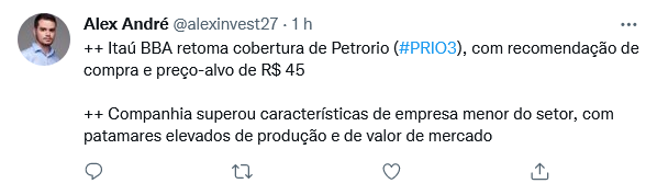 Rio de Janeiro, 8 de setembro de 2022 – A Petro Rio S.A. (“Companhia” ou “PRIO”) (B3: PRIO3) informa que recebeu comunicado da Petróleo Brasileiro S.A. (“Petrobras”) sobre o encerramento do processo de venda do Campo de Albacora (“Campo” ou “Albacora”), uma vez que as partes não chegaram a um acordo sobre a avaliação do ativo.
