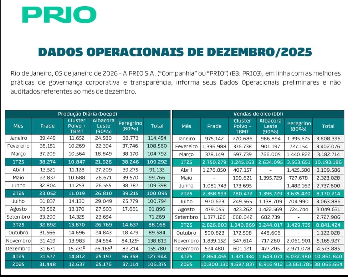 Prio com 155 mil barris por dia em dezembro de 25, bom incremento na produção!