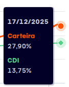 Se dividirmos 26,85 por 13,15 dará 2,04 ou seja um rendimento de 204% do CDI.